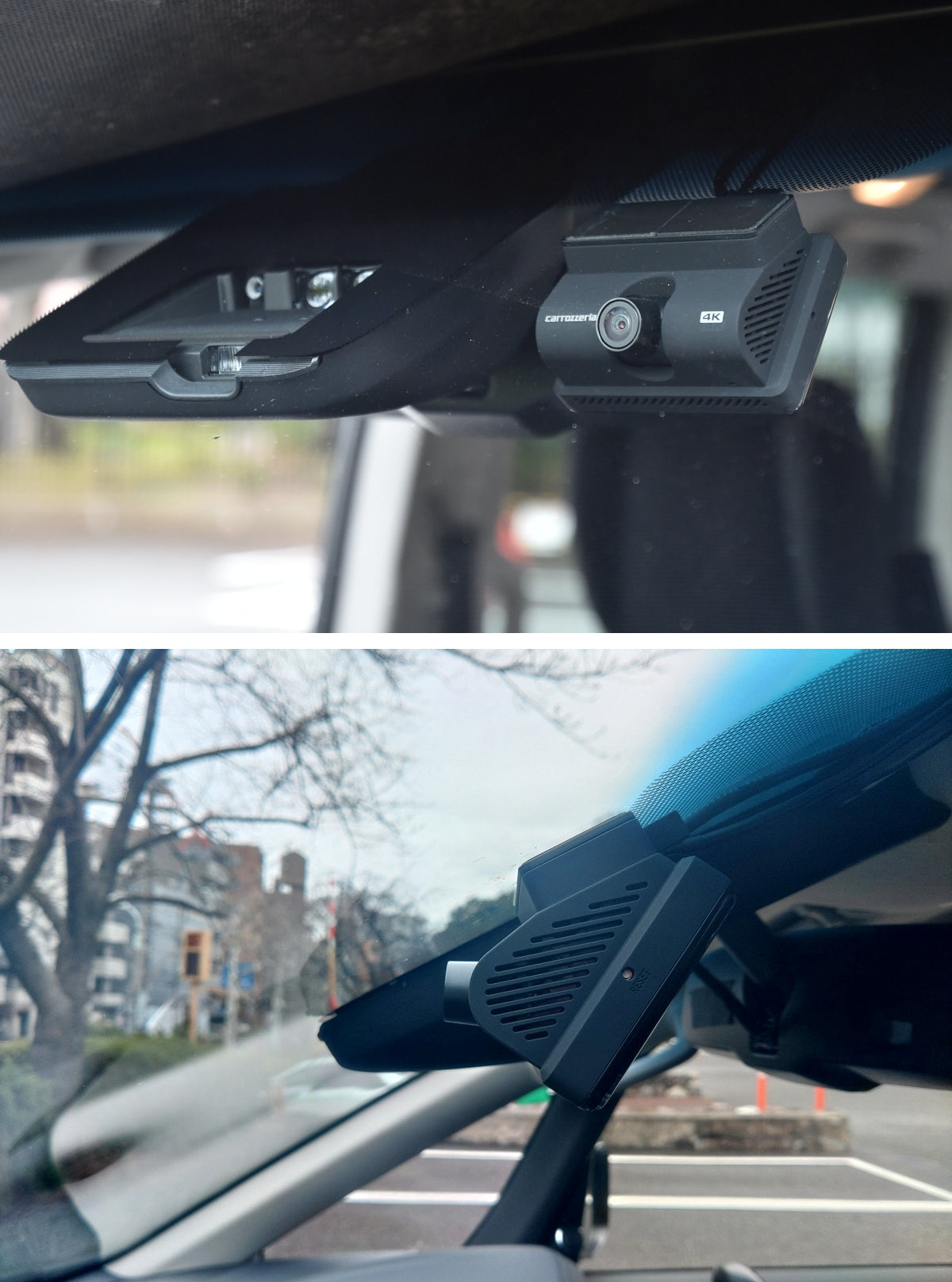 システムは、フロントカメラを内蔵した本体とリヤカメラの2ピースで構成される。このうちフロントカメラには、一般的なフルHD(約200万画素)の約4倍(約830万画素)となる高解像度4K録画に対応したカメラを搭載。周囲の風景はもちろんのこと、先行車やすれ違うクルマのナンバープレートまで鮮明な記録を可能にした。