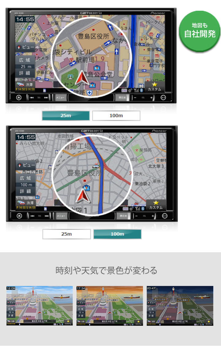 楽ナビの地図は「ドライブ専用」。豊富な情報から知りたいことを瞬時に読みとれるよう、
