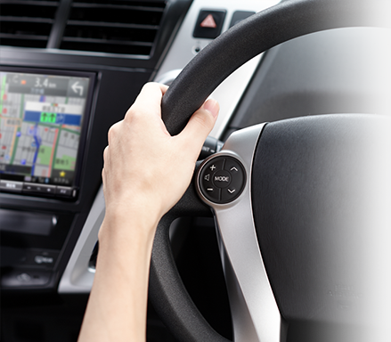 簡単な設定で、国産車全メーカーの純正ステアリングリモコンからの操作も可能に。お好みの機能を割り当てることもできます。 ※別売のケーブル、またはアダプターが必要です。