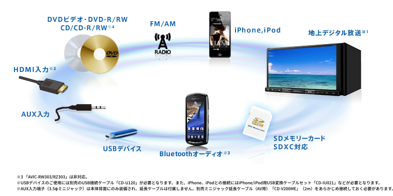 MapFan「地図割プラス」 - 「AVIC-RW303III」には電源ケーブルが付属されておりません。取付けには別売の取付キットが必要となります。