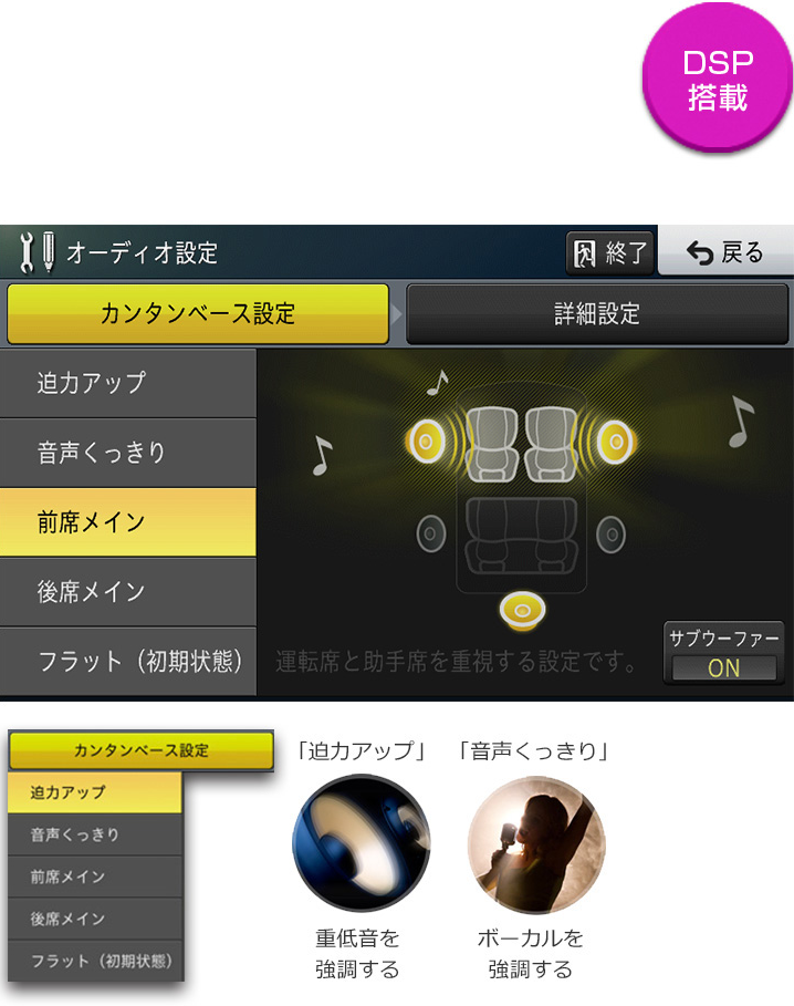 楽ナビには、ハイクオリティで音楽や映像を再生するために磨き上げた機能や、