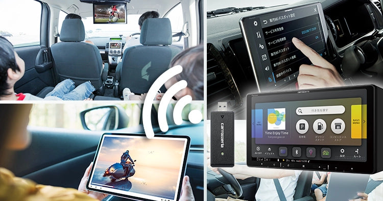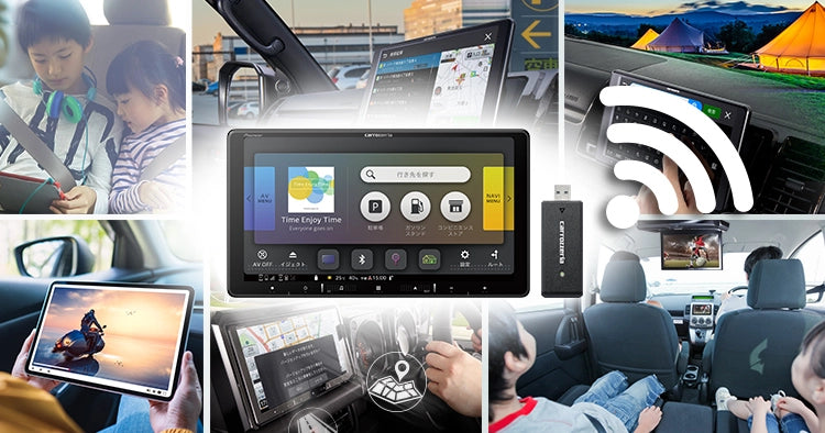*車室内をWi-Fiスポットにする場合は、同梱のネットワークスティック、または別売のネットワークスティック「ND-DC4」が必要となります。また「ネットワークスティック」をご利用の場合は、「docomo in Car Connect」への登録とプランのチャージが必要となります。申し込みにはdアカウントが必要です。オンラインゲームなどお楽しみいただくコンテンツによっては通信の仕様上再生できない場合もあります。