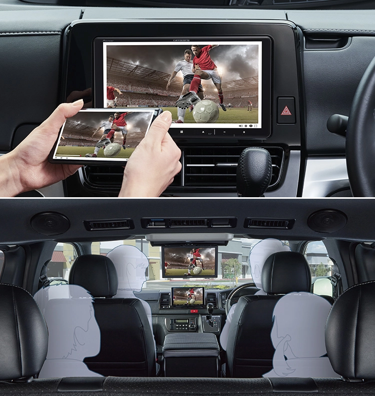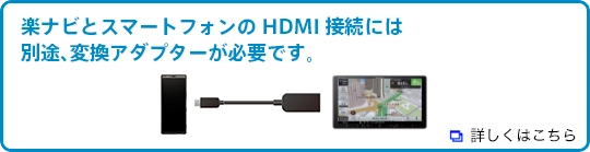スマホなどの外部機器と接続して、多彩な映像コンテンツが高画質のまま楽しめるHDMI入出力に対応。後部座席のモニターなどと組み合わせれば、車室内みんなで一緒に同じ映像を楽しむことができます。