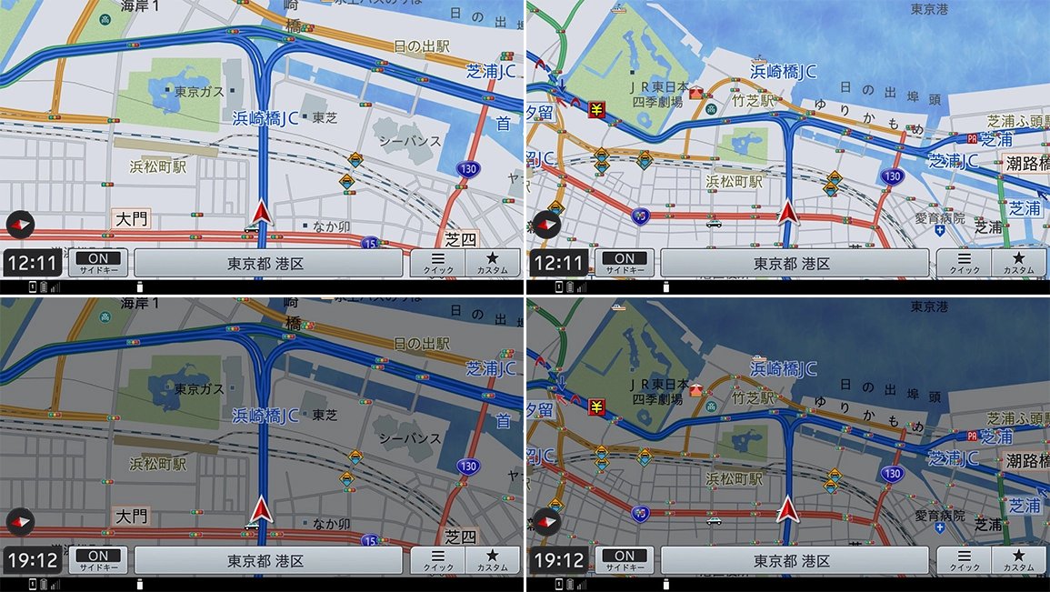 HD解像度を最大限に活かし、地図表示やメニュー表示などもドット単位で徹底的にチューニング。細部まで見やすく明確な描画に加え、1677万色の色諧調表現やフルデジタル伝送による高解像度化にも対応。知りたい情報を素早く得るために地図表示も細部までクッキリ表現し、瞬時に的確な情報を取得できます。