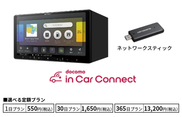 走行中も安定したデータ通信をかなえるドコモの車内向けインターネット接続サービス「docomo in Car Connect」が、ネットワークスティック経由で利用可能。お得な定額プランで通信量を気にせず、動画に最新情報チェックに仕事にと、インターネット環境が思う存分利用できます。