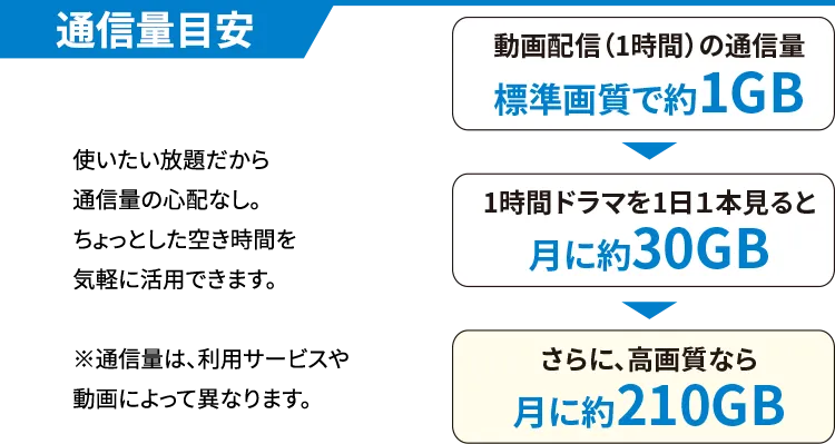スキマ時間を使って効率的に仕事をこなすこともできます。 資料データの送受信や、通信量が気になるオンライン会議、テレビ電話なども安心です。