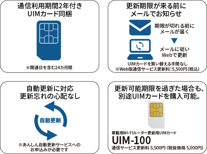 UIMカードを交換しなくても利用期間を延長できるWeb更新※に対応しています。