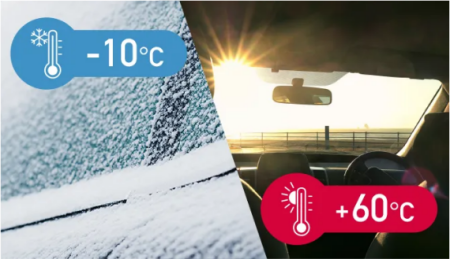 動作保証温度-10℃~60℃で、車室内特有の過酷な環境にも対応します。