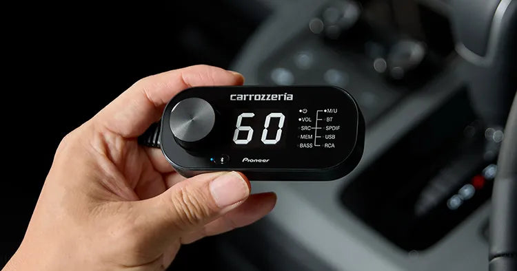 見やすいデジタル表示で、外部オーディオプレーヤーの操作に対応したワイヤードリモコンを装備。ボリューム調整、ソース選択、プリセットメモリー選択、BASSレベル調整などを手元で容易に操作でき、音楽を存分に楽しめます。また、無駄を排した機能的なデザインで、車室内をスタイリッシュに演出します。