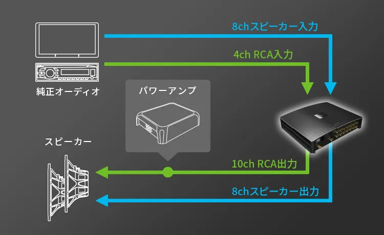 入力 8chスピーカー入力/4chRCA入力 出力 8chスピーカー出力/10chRCA出力