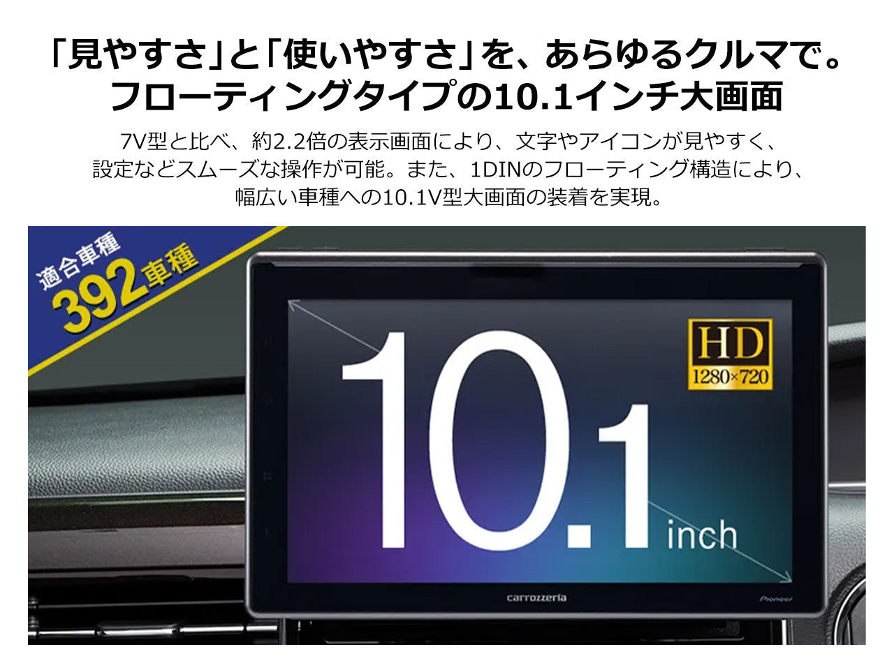 ストリーミング映像やスマートフォン、USBに保存された動画など、多様化する映像ソースにも対応するため、高精細HDパネル(1280×720)を採用。 コントラスト際立つクリアで鮮やかな描画で、繊細な色やニュアンスまでも忠実に表現します。 クラス最高画質が実現した美しさにより、車室内は大迫力の映像空間へ。
