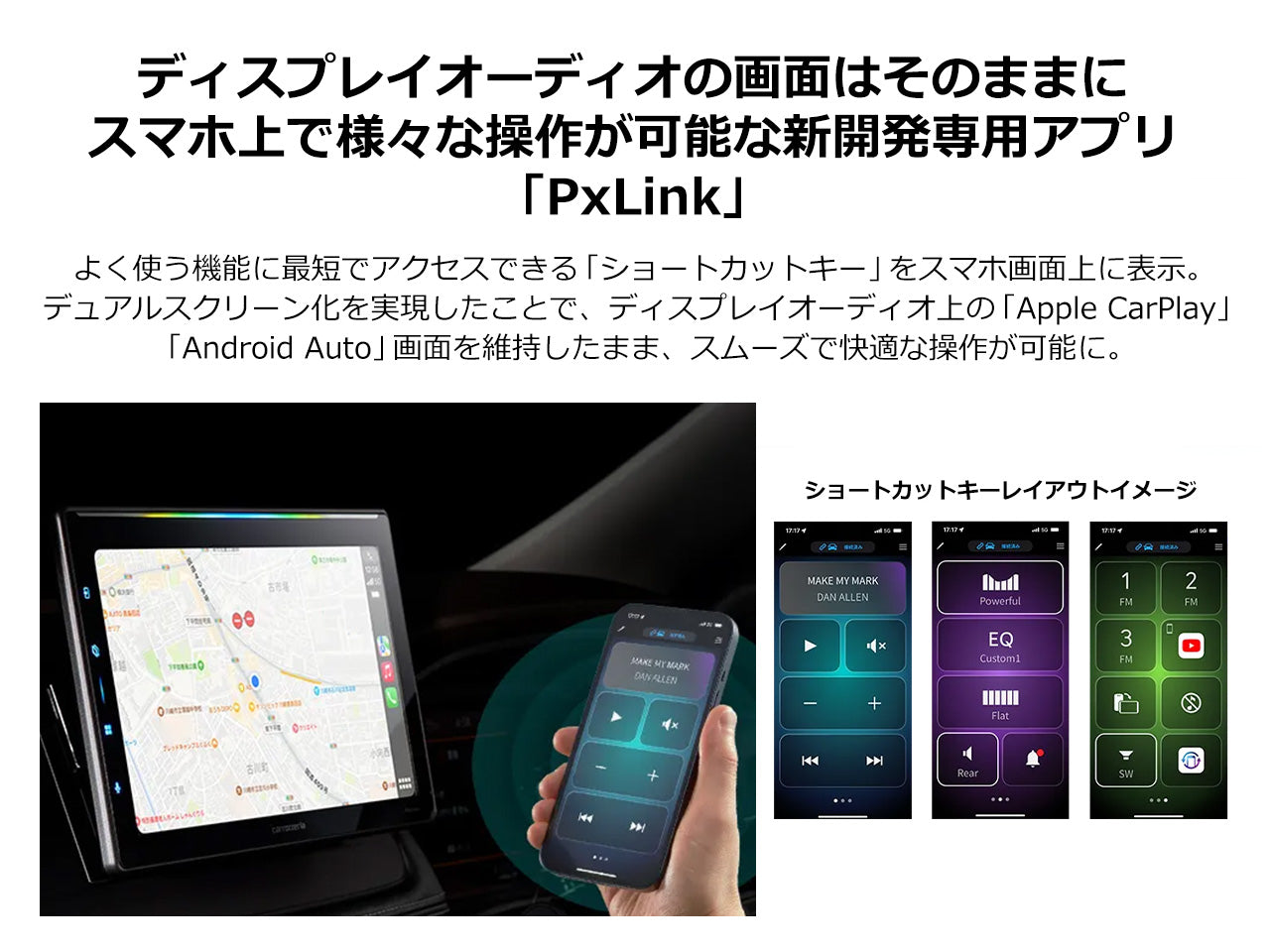 USBケーブルが不要のワイヤレス接続だから、自動接続で手軽に「Apple CarPlay」「AndroidAuto」の使用が可能に。