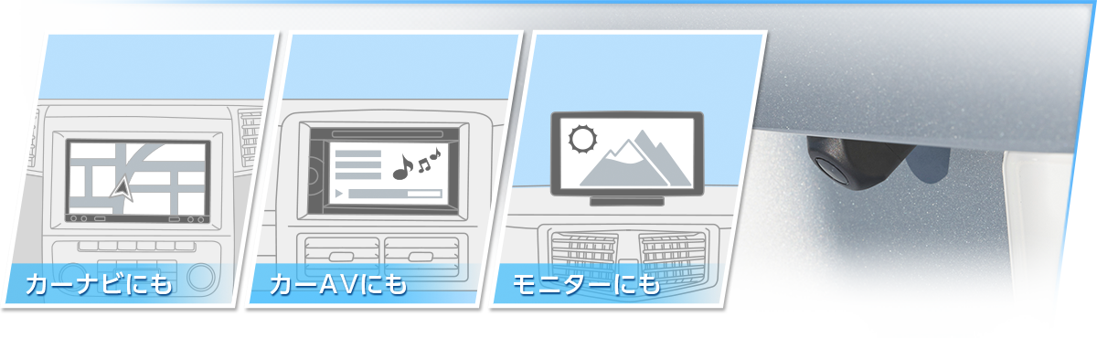 カロッツェリアカーナビやカーAVをはじめ、RCA映像入力端子付の様々なモニターと組合わせて使用できます。