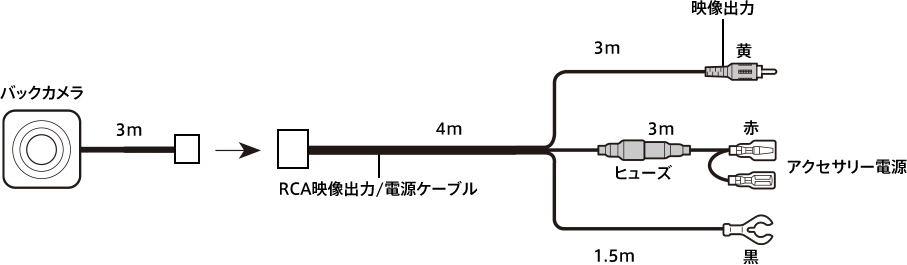 電源ボックスの機能をカメラ部に内蔵するとともに、中継カプラーを小型化。ケーブルのみのすっきりした配線で、バックカメラ本体と配線引回し作業が別々に行えるので、効率良く、スムーズで確実な取付けが可能です。