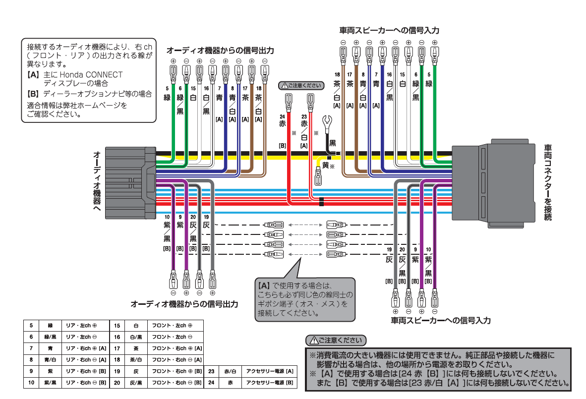 純正システムのスピーカーラインとの接続をスムーズにする入出力ケーブル。純正配線を切ることなくカプラーの接続だけで取付け可能。