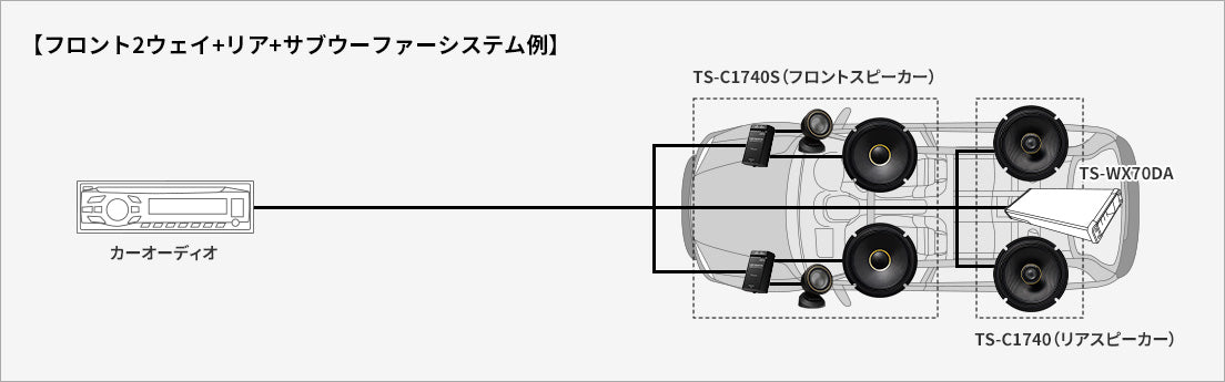 リアスピーカー・サブウーファーを組合わせることにより、車室内全体に良質なサウンドを響かせます。