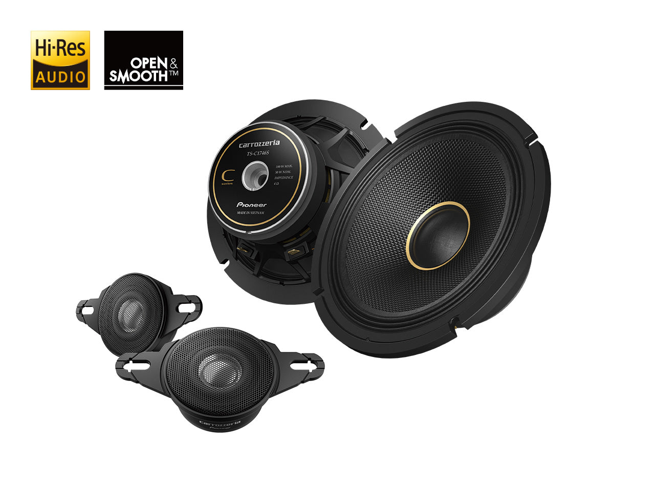 クリアで艶のある音で車室内を満たすため、振動板や磁気回路、フレームなど「Cシリーズ」専用に設計。長年にわたるスピーカー作りのノウハウを結集し、低歪みかつ指向特性に優れ、高解像度化によって透明感と伸びやある高域を実現します。