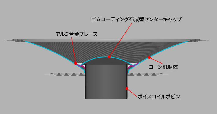 ボイスボビンと振動板との伝播ロスが少ない「頂点駆動方式」を採用。振動板の動きをより正確に制御し、不要共振を徹底的に排除しました。歪みの少ない細かい音までも忠実に再現します。