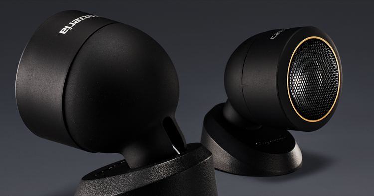 トゥイーターは、落ち着いた印象を与えるマットブラック塗装とシームレスなラウンド形状。フロントからの見え方にもこだわり、ダッシュボードで主張しすぎることなく自然に溶け込むデザインです。