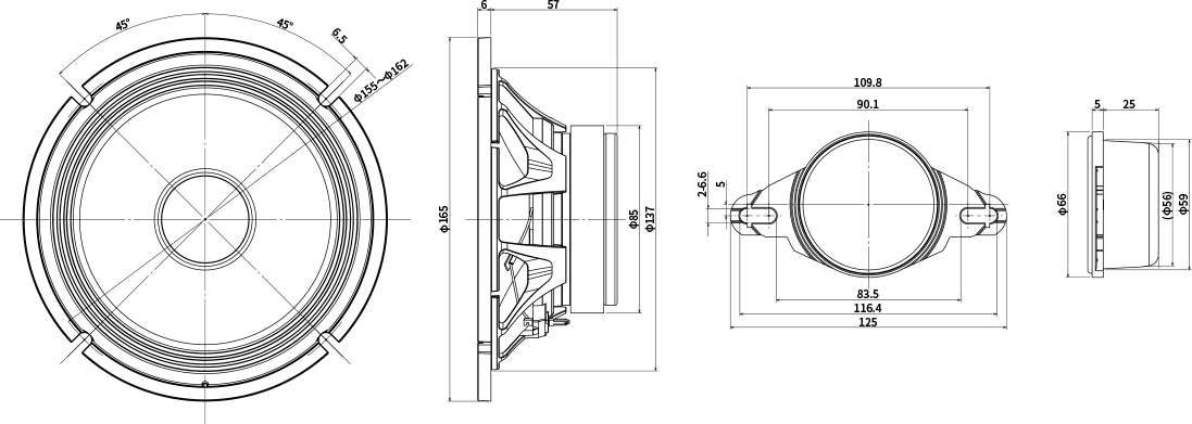「高効率ロングボイスコイル」と大型「フェライトマグネット」とヨーク形状を最適化した高効率磁気回路によって振動板をより効率的に駆動。低歪化と大振幅時における音の正確性の向上を実現します。