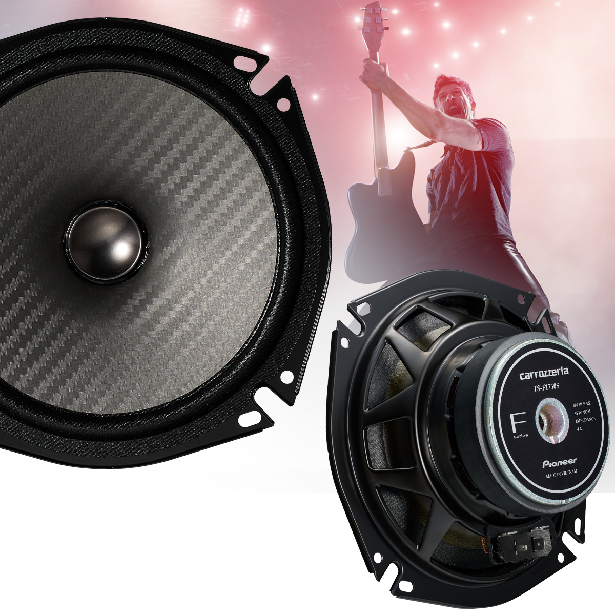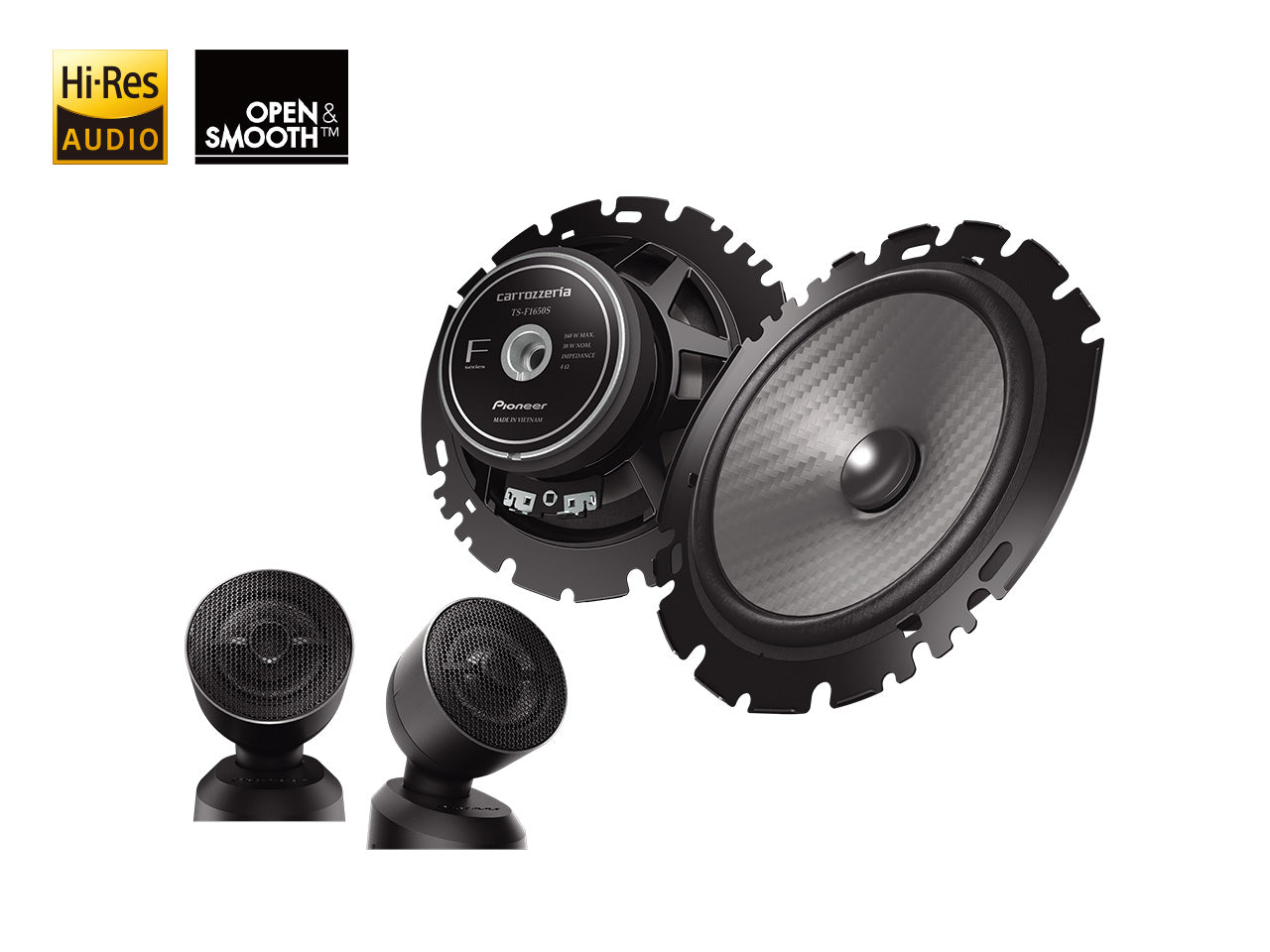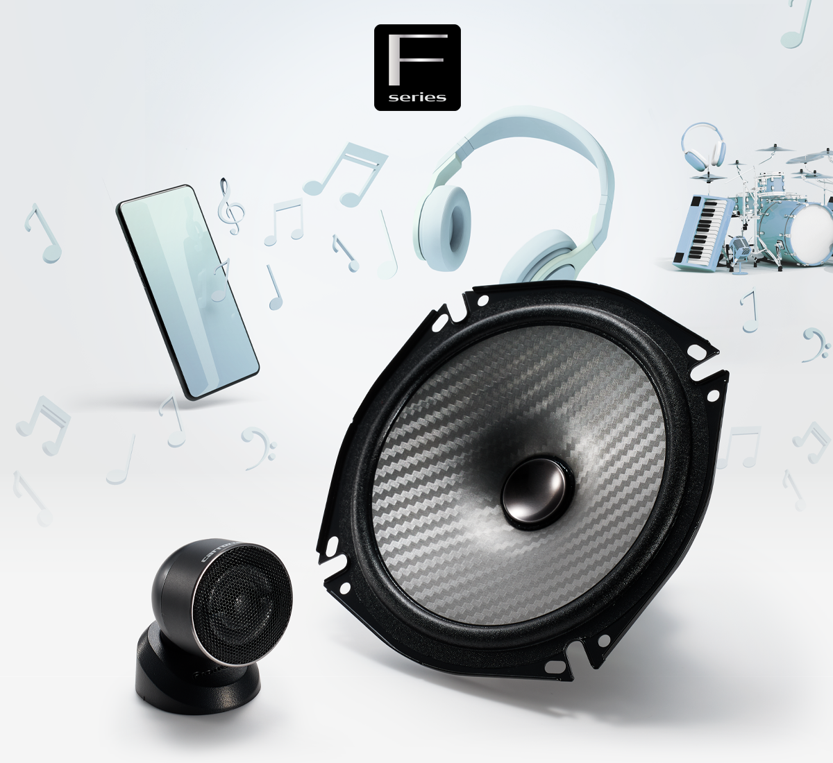 ウーファーのコーンにはFシリーズのテーマカラーであるシルバー計のからを採用。立体的かつ緻密なカーボンテクスチャとマッチし、愛車をアップグレードします。