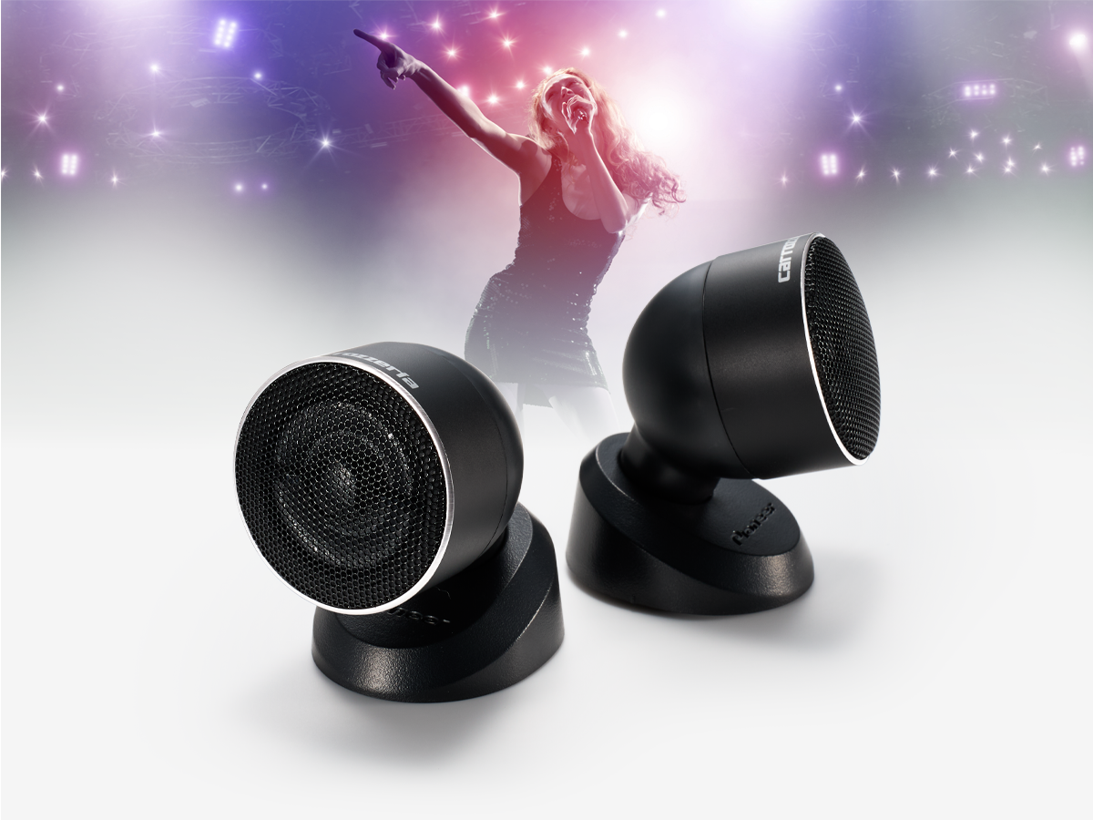 ブラックの本体に大口径のシルバーリングをあしらったトゥイーターは、車室内でも目を引く、ほど良い存在感を醸し出す。インテリアを邪魔しないスマートな佇まいのデザインです。