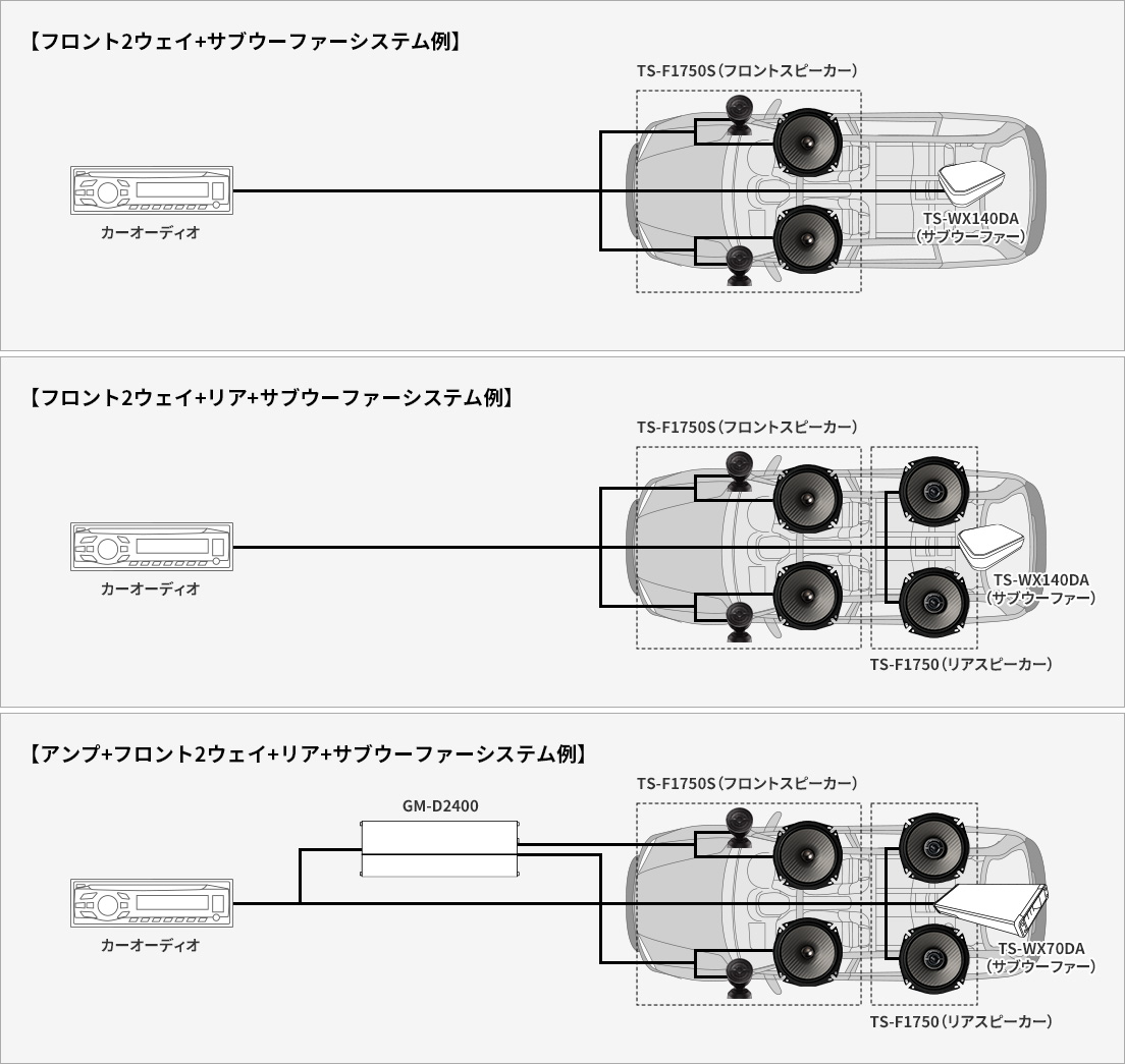 リアスピーカー・サブウーファーを組合わせることにより、車室内全体に良質なサウンドを響かせます。
