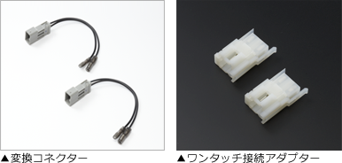 純正スピーカー配線とウーファー部をスムーズに接続する「変換コネクター」と形状の異なる複数の自動車メーカーのコネクターに対応可能な「ワンタッチ接続アダプター(特許取得済)」を同梱しています。また、トヨタ車のトゥイーターバイパス用ジャンパーコネクターも同梱しています。