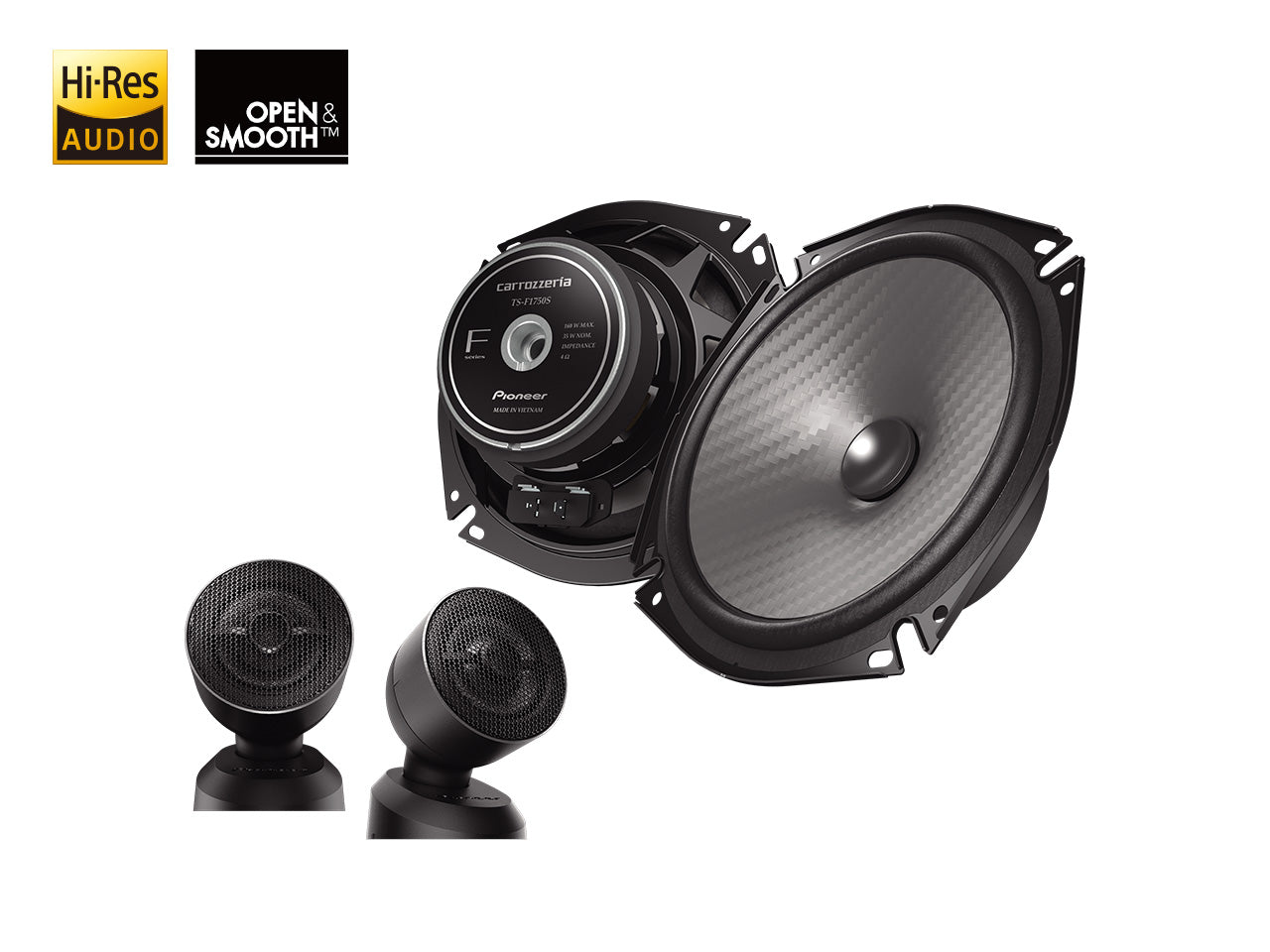 ウーファーのコーンにはFシリーズのテーマカラーであるシルバー計のからを採用。立体的かつ緻密なカーボンテクスチャとマッチし、愛車をアップグレードします。