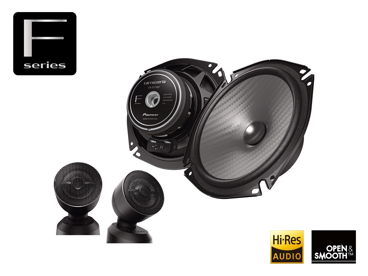クリアな高音とパワフルな低音が、いつもの音楽を一変させるカロッツェリアのカスタムフィットスピーカー、Fシリーズの17cmセパレート2ウェイスピーカー、セパレート2ウェイスピーカー