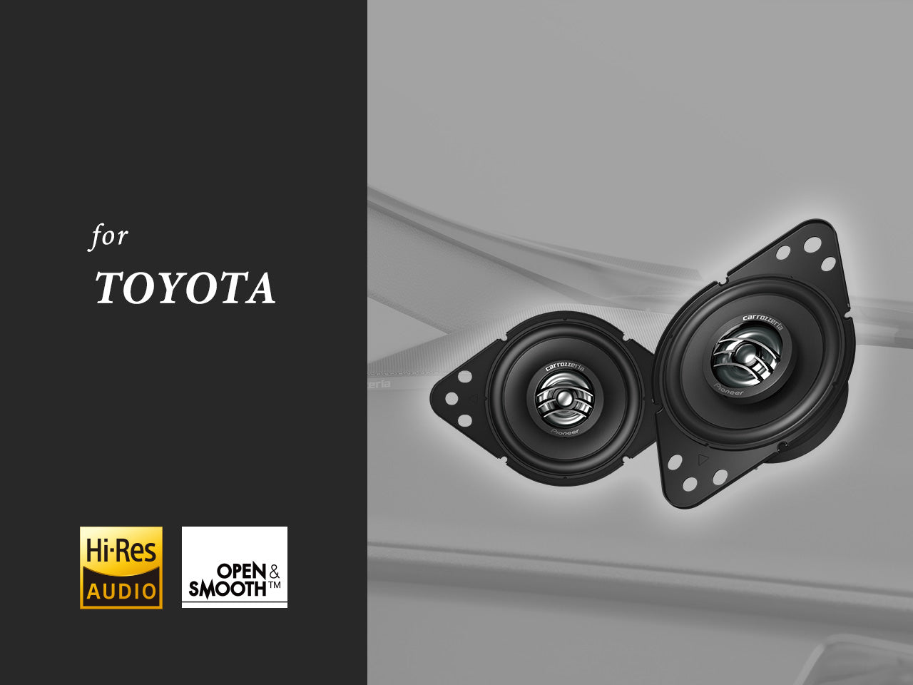 トヨタ車の車室内を最適な音響環境に変貌させるには、車種特有の課題を乗り越える必要があります。たとえば、フロントガラスへの音の反射により定位が乱れてしまう、ダッシュボード内トゥイーターのユニットサイズは共通ながらも、車種によって取付位置や角度などの取付環境が異なるなど、課題の性質も様々です。カロッツェリアのトヨタ車専用スピーカーなら、純正トゥイーターダッシュボードへのスムーズなスピーカー設置が可能。車室内空間への音の広がりを促す「ディフューザー形状」、指向性を自在に調整できる「ロータリー機構」を採用することで、音質劣化の要因を取り除き、大幅な音質向上を手軽に実現します。また、クリアな中高域再生や最適な音場と臨場感あるサウンドを創出する「Open & Smooth」コンセプトを踏襲。トヨタ車のさらなる高音質化は、よりスマートでより身近なステージへ。