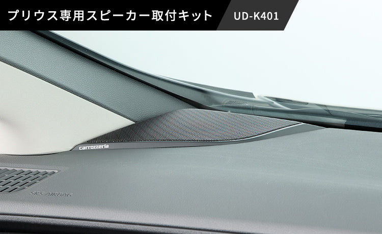 プリウス専用設計のスピーカー取付キット「UD-K401」とトヨタ車専用スピーカー「TS-H100-TY」の組合せにより、プリウスの車室内を最適な音場かつ臨場感あふれる音に一変させます。また、専用設計ならではのスマートな取付けを可能にするだけでなく、プリウスのインテリアに自然に溶け込む高品位デザインを実現しています。