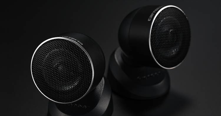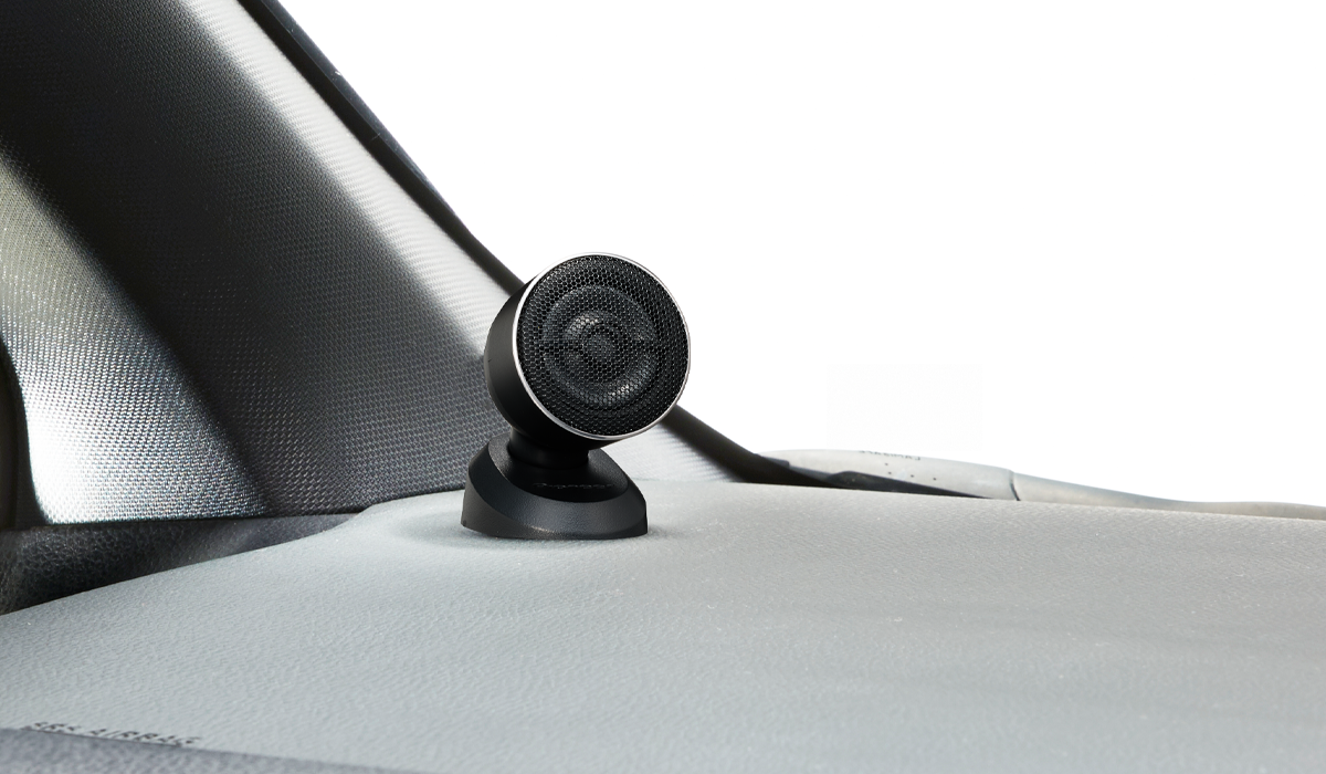 ブラックの本体に大口径のシルバーリングをあしらったトゥイーターは、車室内でも目を引く、ほど良い存在感を醸し出す。インテリアを邪魔しないスマートな佇まいのデザインです。