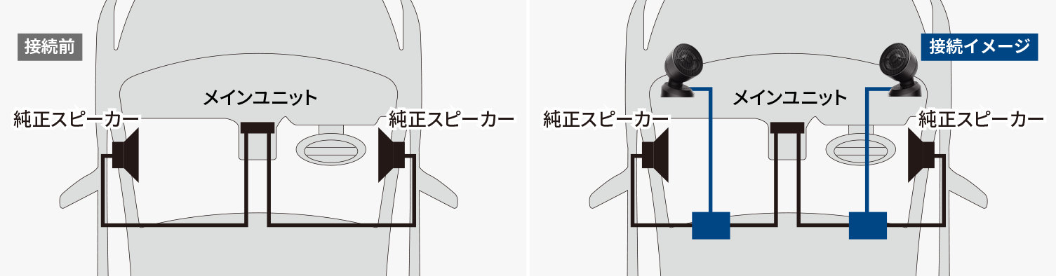 純正スピーカーへの接続で