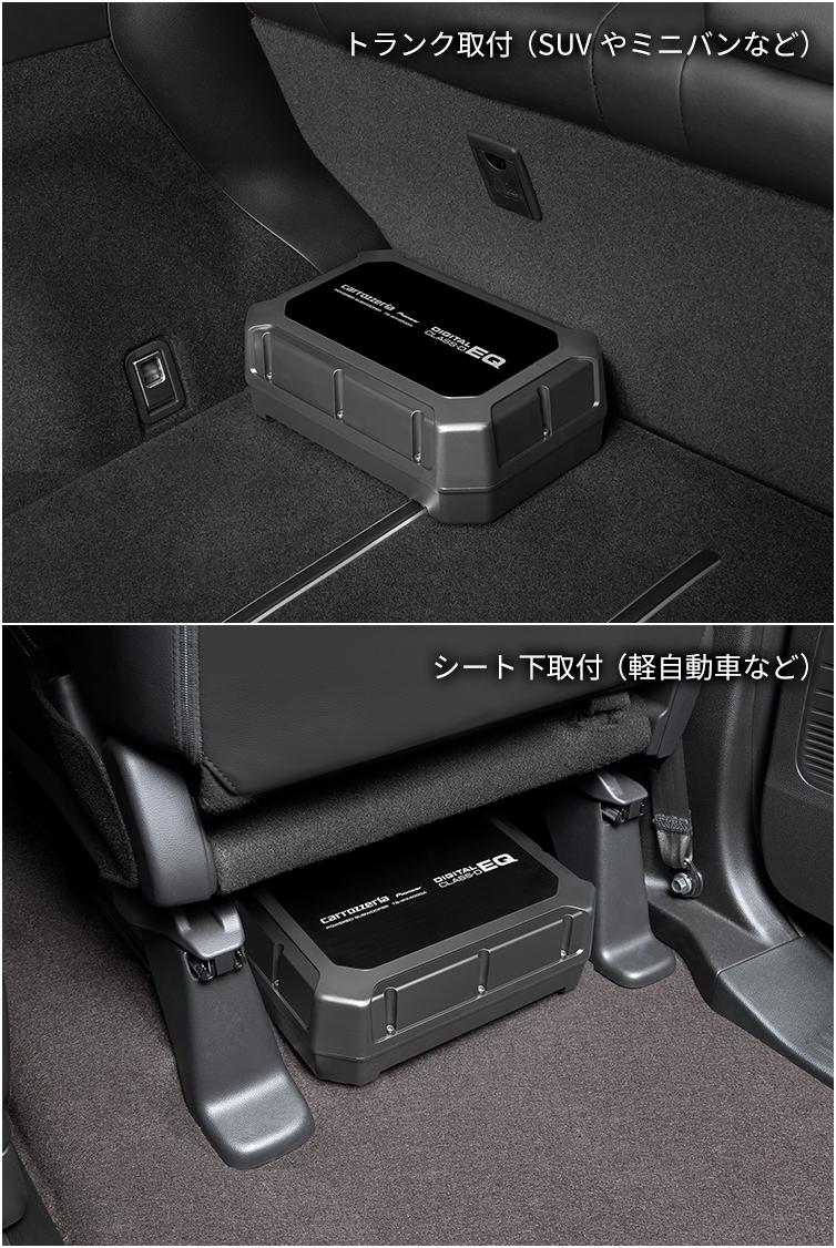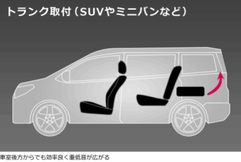 全高100mmのコンパクトサイズを実現し、多彩な車種のシート下に取付可能。また、人気のSUVやミニバンなどの広い車室内でも、量感にあふれる重低音を響かせることができます。