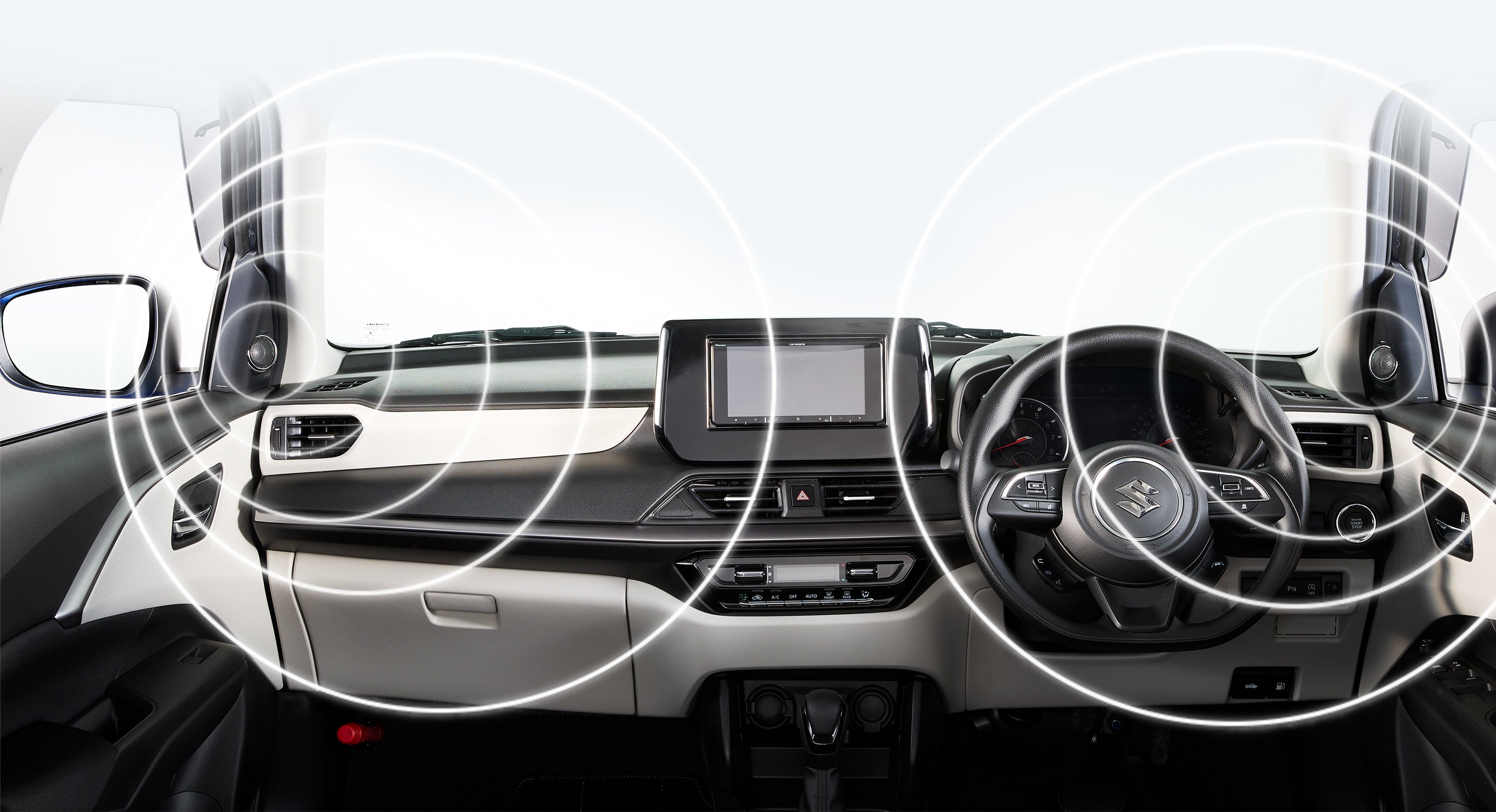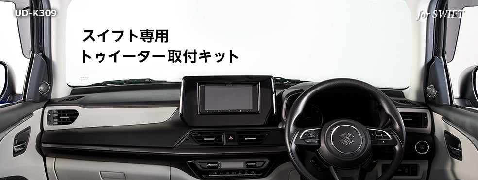 クロームメッキのリングを象徴的にあしらいつつ、スイフトの車室内に溶け込む専用設計ならではの高品位なデザイン。