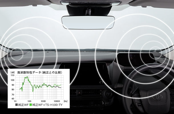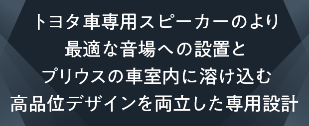 スピーカー取付部に車室内方向へ傾斜を付けたガーニッシュにスピーカーを取付けることで、フロントガラスへの音の反射を軽減。加えて、トヨタ車専用スピーカー「TS-H100-TY」の「ロータリー機構」との組合わせにより、中高域における大幅な指向性向上を実現。プリウス専用設計ならではの最適な音場構築とクリアな高域再生を可能にします。