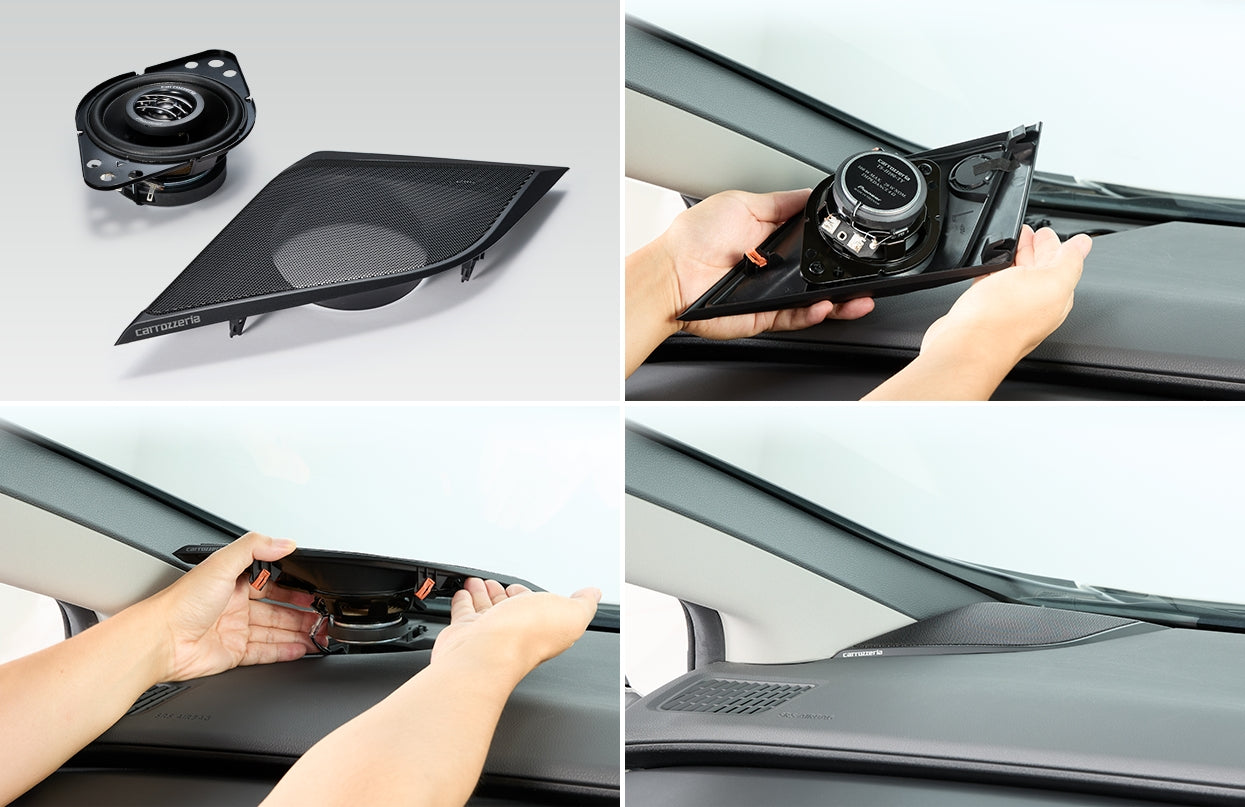 純正トゥイーターダッシュボード部への手軽でスマートなスピーカー取付けを実現。