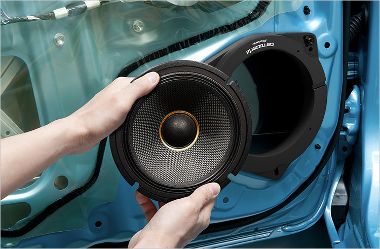 ドア内側の強度不足を補い、不要な共振を排除することで高音質へと近づけるインナーバッフルに、ホームオーディオ用スピーカーなどにも使用される高剛性MDFを採用。硬度や密度にバラツキが生じる天然木や合板と異なり、MDFは密度や硬度が極めて安定しています。インナーバッフルでは左右のわずかな材質の差が、位相ズレなどを発生させるため、硬く制振性に優れたMDFは、手軽に音質向上を図れる素材と言えます。ドアの共振などを抑えることで低域のレスポンスが向上し、スピード感にあふれるサウンドを実現します。