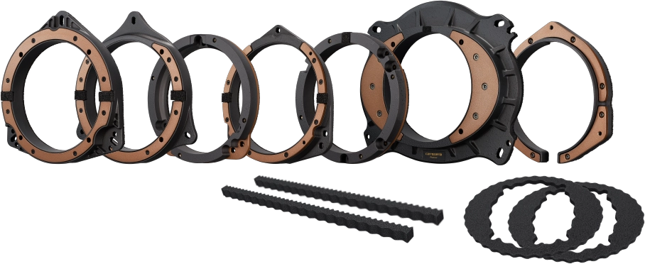 「ハイブリッドメタル ダイキャスト」や、「ウェーブ形状遮音クッション」などの革新技術を採用。 スピーカー本来の性能を最大限に引き出し、大幅な音質向上を簡単・確実に実現します。