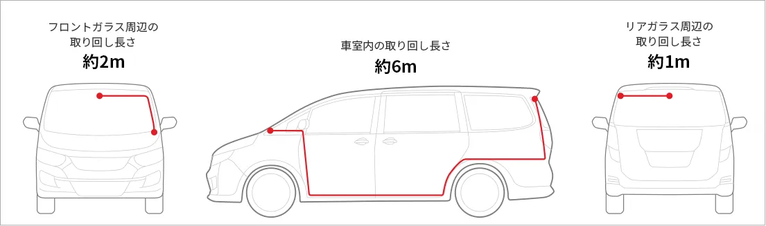 小型のリアカメラは9mのケーブルを採用しているため、大型のミニバンやSUVといった全長の長いクルマにも取付けが可能です。