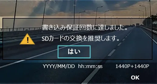 別売のパイオニア製SDメモリーカードを使用すると、定期的にSDカードの状況を確認し、SDカードの交換時期をお知らせする「SDカード寿命警告機能」を搭載しています。