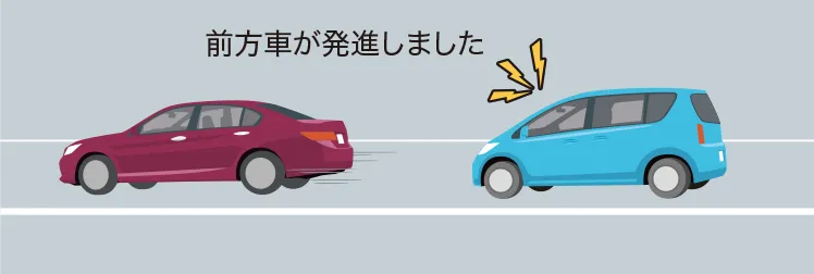 信号などで停車中に先行車が発進したことを、音声メッセージと画面表示でお知らせします。