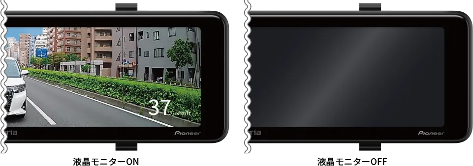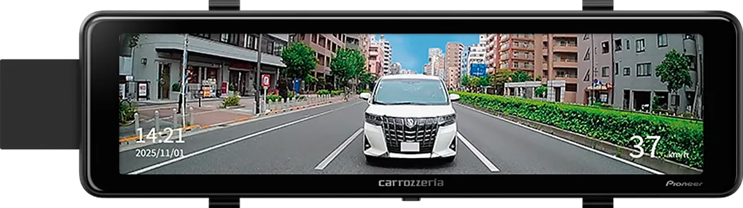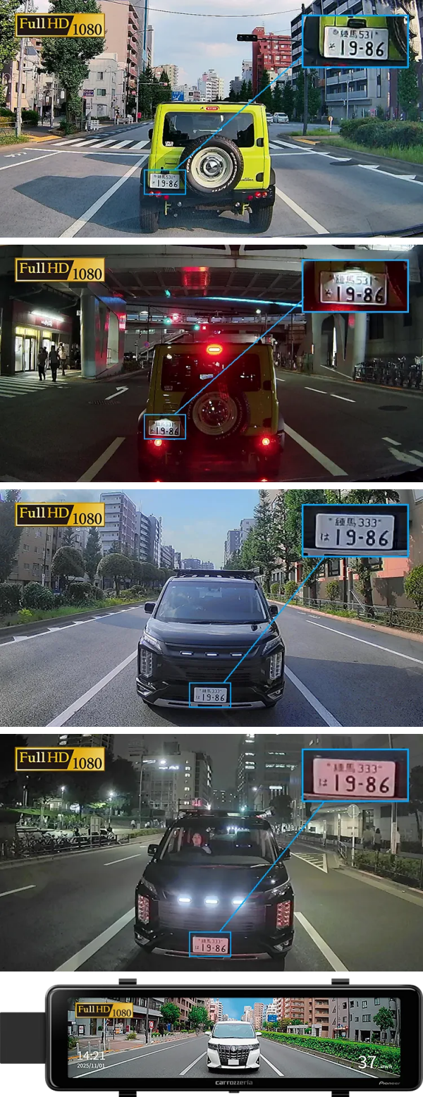 フロント/リアともに200万画素の高画質フルHDカメラを採用。高解像度録画により、ナンバープレートの文字まで鮮明に記録します。また、ディスプレイには11V型高輝度IPS液晶を採用し、高画質な映像を余すことなく、昼も夜も隅々まで明るくクリアに映し出します