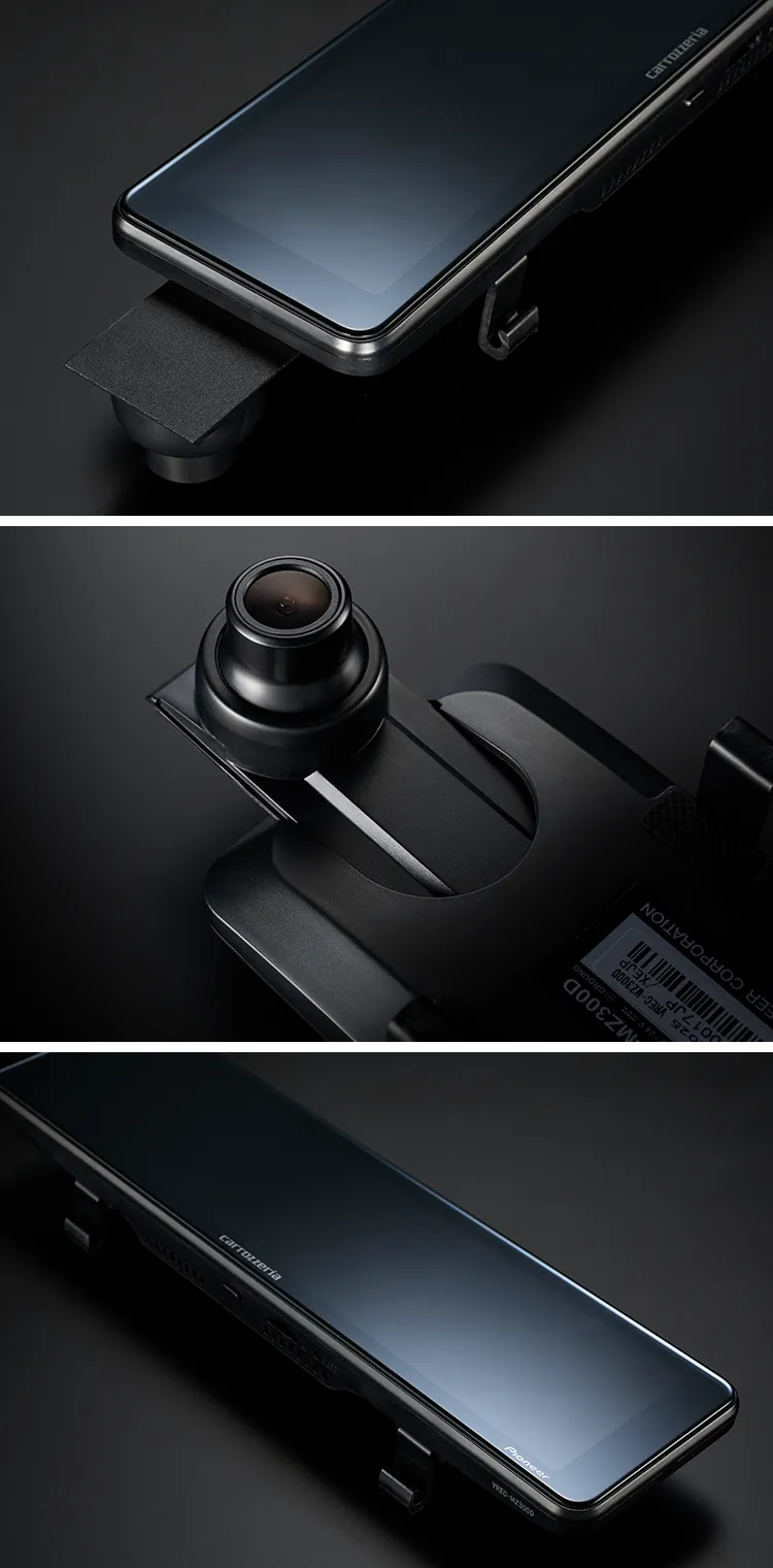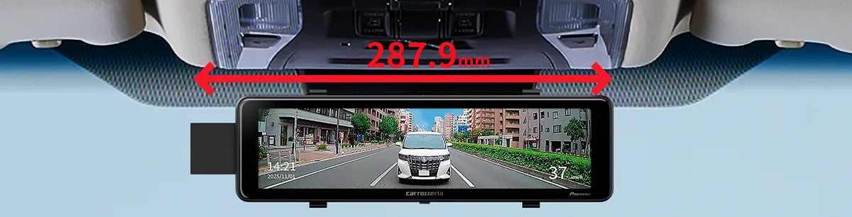 スライド式のフロントカメラを含めても本体幅287.9 mm。多くの車種で運転の妨げにならない取付けが可能です。