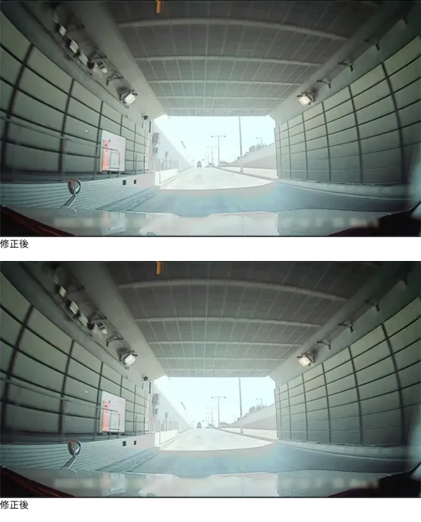 前後のカメラともに急な明るさの変化により、白く飛んだり、黒くつぶれたりしやすい場合でも、映像の明暗差を補正する「HDR」機能を搭載。逆光時やトンネルに出入りした瞬間のように明るさが急変する場所などでも、鮮明な映像で録画します。